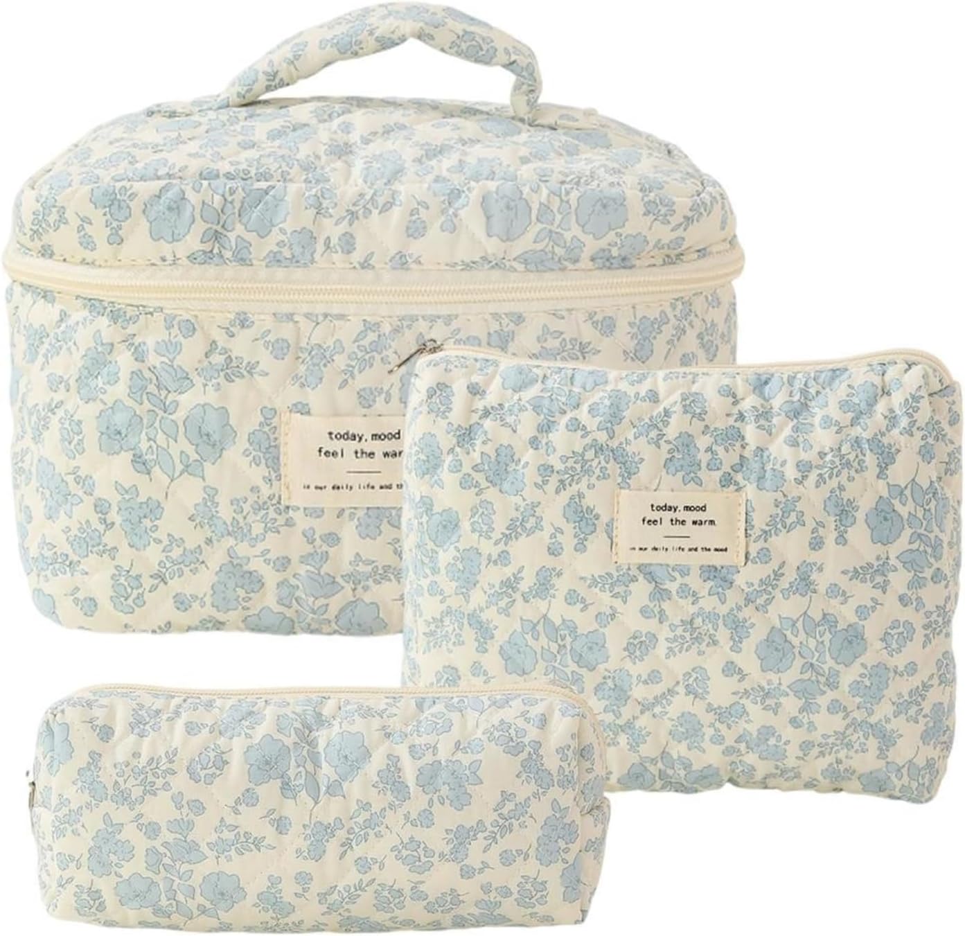 Cosmetic Bags for Women(3 pcs) Cute FloralMakeup Bag, Organizer Storage Make Up Bag,Travel Toiletry bags,Handbags Purses